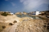 Όμορφη και ήσυχη αμμουδιά στο γραφικό λιμανάκι που είναι περιτριγυρισμένο από βράχια.